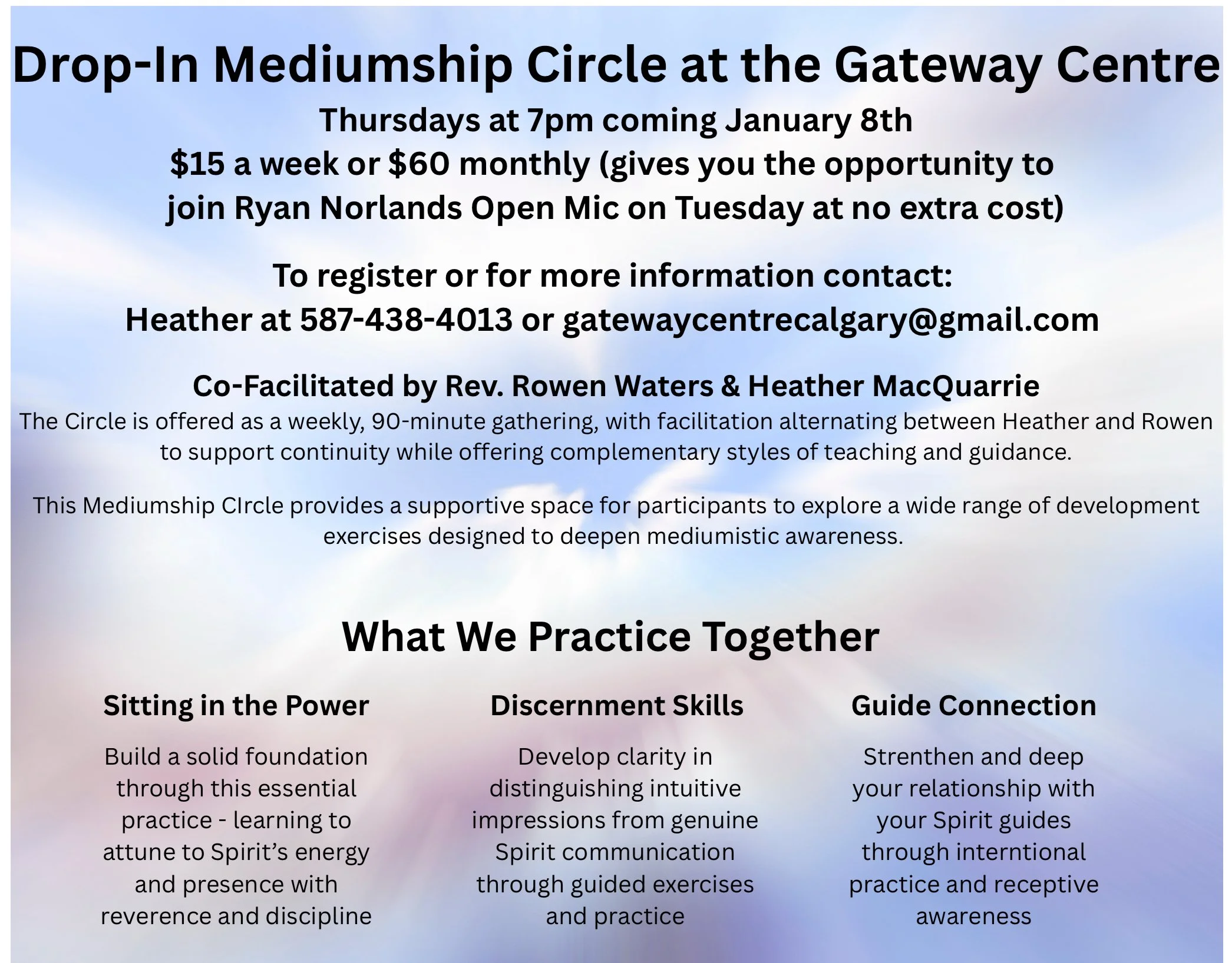 Greetings to all Circle leaders and Circle participants/members at Gateway Centre and Calgary Spiritualist Church: