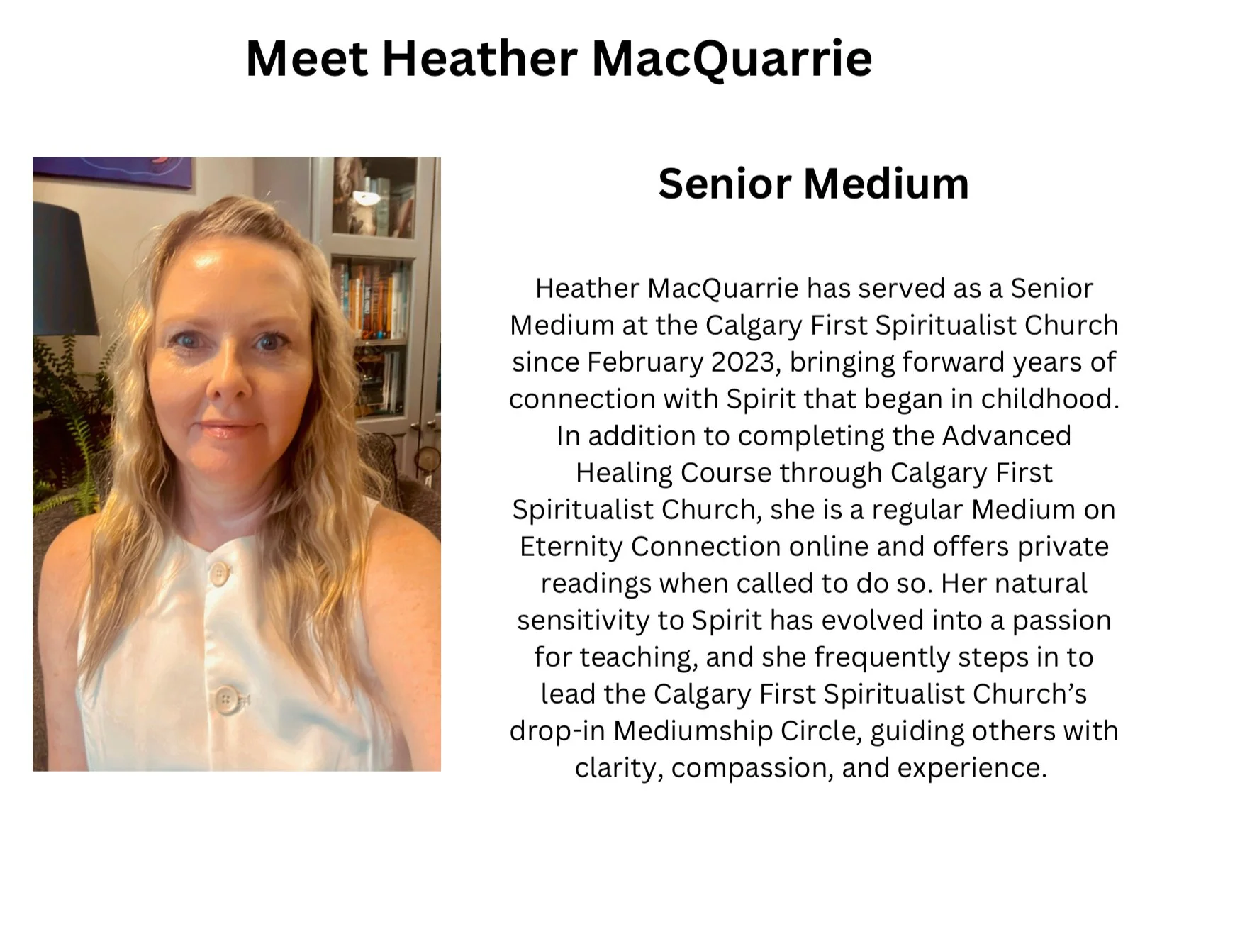 In 2000, Sharon started going to the spiritualist church for Meditation and expanded continuing on with Healing. She has taken various courses over the years and has participated in many circles over the years but has also held her own circles. She has trained with a number of UK mediums. In 2018, Sharon had the opportunity to attend and participate in the World Spiritualist Congress held at the Arthur Finley College, where there were 50 countries represented. Sharon enjoys serving spirit and her spiritual community by being a medium, healer and more recently as President of the Gateway Centre.
